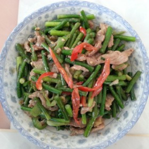 材料:猪肉200克、小南瓜一个、大蒜2瓣、生粉、盐适量、酱油适量、油适量、白糖适量。将南瓜、肉、大蒜分别洗净。将大蒜拍碎去皮简单用刀柄敲几下,南瓜带皮切条,猪肉切丝放入碗中加入生粉一小勺、白糖半勺、酱油(最好是生抽)适量,用筷子搅拌均匀腌制10分钟左右。待锅中的有烧热倒入腌制好的猪肉爆炒至8成熟,捞出备用,再在锅中加入大蒜碎翻炒几下,这时候再加入南瓜条继续翻炒,加入少量的清水焖煮一小会,待小南瓜变软后再加入刚才的猪肉一起小炒片刻至肉熟透,加入少许的盐搅拌均匀捞出便可食用了。