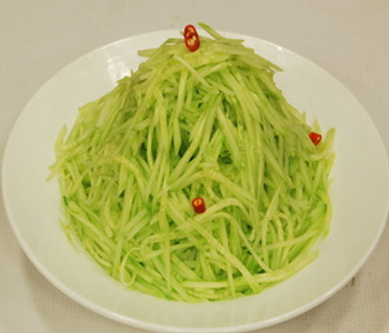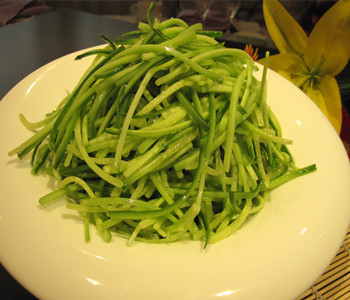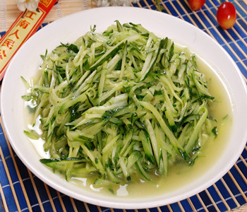 简单的清炒黄瓜丝,既好吃又爽口,营养也丰富!吃腻了大鱼大肉,换换小清新的口味吧!素炒的黄瓜丝,带着鲜甜的原味口感,脆脆的相当好吃哟!