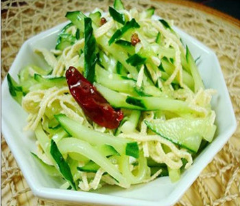 2、炒黄瓜丝的时间要控制好,这样炒出来的黄瓜会脆脆的很好吃。