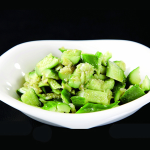 豆腐性寒,含碳水化合物极少,有节制机体和润燥平火作用。搭配性味甘寒的黄瓜,具有清热利尿、解表、解毒、消炎、养肺行津、润燥平胃及清热散血等功效。