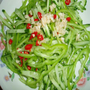 炒黄瓜时间要短,才能碧绿清脆。
