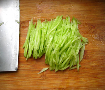 3、黄瓜炒的时间不宜太长,这样才可以保持爽脆口感。