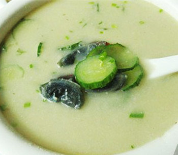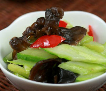 功效:黄瓜中的丙醇二酸能抑制体内糖分转化为脂肪,木耳中的植物胶质有较强的吸附力,可以将残留在人体消化系统中的某些杂质集中吸附再排出体外,排毒清肠,二者一起吃可以排毒减肥。