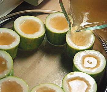 3、将节瓜削皮后切成小块状,然后与猪骨、清水一同放入煲中,并加入去核的红枣,先用大火烧开,再用小火煲一个小时即可。