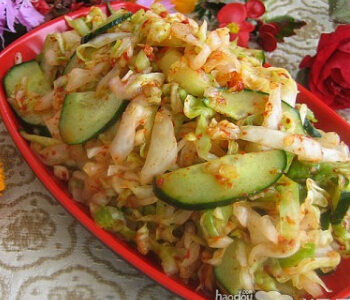 原料:大白菜,5000克;苹果,250克;梨,250克;白萝卜,500克;牛肉清汤,1500克;葱,250克;大蒜,250克;精盐,150克;辣椒面,150克;味精,50克;