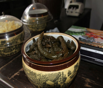 另外,在炒黄瓜酱时,一定要不断地翻炒、搅拌,防止巴锅。如过锅内的汁水干掉了,可以加入少许的猪骨汤或温开水,继续翻炒。