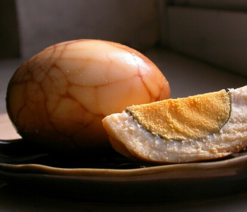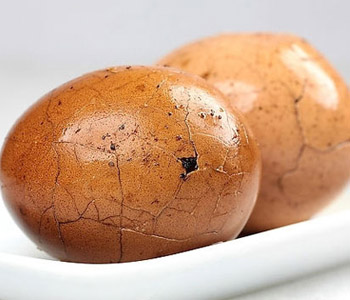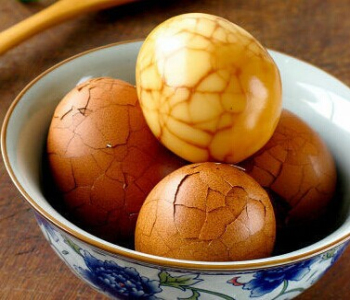 茶叶蛋,著名汉族小吃,中国的传统食物之一,在中国北方常简称茶蛋,是煮制过程中加入茶叶的一种加味水煮蛋,它的特点是茶香浓郁,鲜香可口。因其做法简单,携带方便,多在车站、街头巷尾,游客行人较多之处等场所置小锅现煮现卖,物美价廉。可以做餐点,闲暇时又可当零食,实用和情趣都兼而有之。因为茶叶有提神醒脑的功能,故在烫煮过程中加入少许茶叶,煮出来的蛋便色泽褐黄,茶香味浓郁,鲜香可口。然而,有专家指出,茶叶和鸡蛋的搭配对胃有刺激,是不恰当的食用鸡蛋方法。