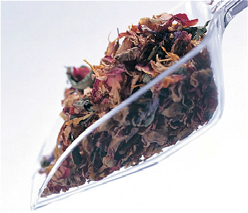 3、若几种花草混合冲泡,建议可将细碎的种类放在滤茶器中,而大朵或大块的则可以放在外层,因为如果茶材不在水中完全舒展开来,则永远泡不出一杯好茶。