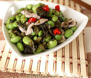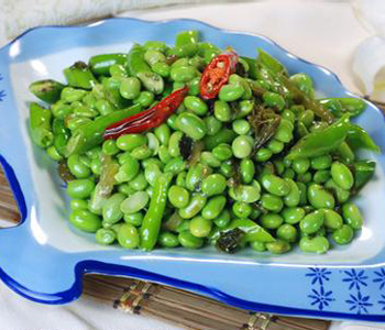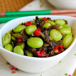 另外,毛豆是为了提鲜,所以毛豆相对于咸菜要多点。还有,在炒辣椒的时候,爆炒一下就应该下毛豆去炒,爆炒时间不宜太长,这样很容易让辣椒变焦了,然后整道菜的味道都会有所影响哦!
