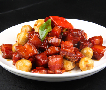 2)肉选择五花肉,切3厘米见方的块,放入冷水中煮开,取出肉备用;