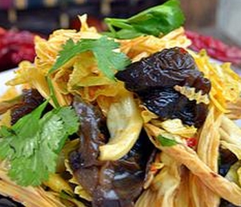 腐竹,又称腐皮或豆腐皮,是很受欢迎的一种汉族传统食品,在炮制的时候也需要注意下细节,因为要确保它如何炮制出营养完全的腐竹呢!一般来讲,都说是用清水浸泡,3~5小时即可发开,可是不得注意有些着急的朋友,可能会用开水去泡。开水只能加速表面泡开的速度,却对泡开内芯没有作用,而且容易使得表面泡散。