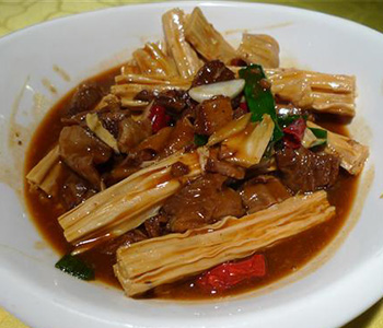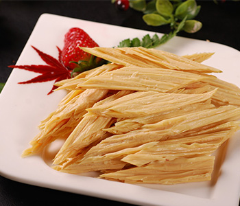 腐竹是中国人很喜爱的一种传统食品,具有浓郁的豆香味,同时还有着其他豆制品所不具备的独特口感。腐竹色泽黄白,油光透亮,含有丰富的蛋 白质及多种营养成分,用清水浸泡(夏凉冬温)3-5小时即可发开。可荤、素、烧、炒、凉拌、汤食等,食之清香爽口,荤、素食别有风味。
