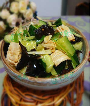 凉拌腐竹主料是腐竹,用酱油、醋、香油等配料相拌做成,是夏日消暑的凉菜。腐竹具有浓浓的豆香味,蛋白质含量很高,常被人们称为“素中之荤”,是老少皆宜的健康食品。酷热的夏天,来一道口感清凉的凉拌腐竹,虽然不能横扫酷热,但在起筷吐下的一瞬间,少了些热气,多了份清凉。