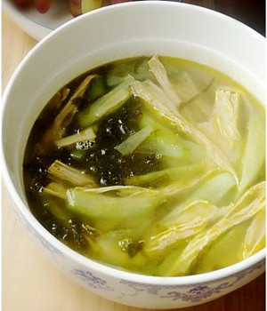 黄瓜腐竹做汤呢,比较知名的就是紫菜黄瓜腐竹汤了,其实也不仅限于这道汤菜了,也可以添加香菇、瘦肉、胡萝卜等,做成不同口味的汤。