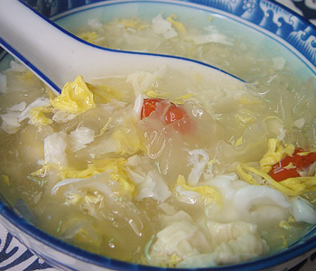 还有就是不得不注意的,有人喜欢吃蛋花汤,有人不喜欢,如果不喜欢蛋花的可以先把鸡蛋煎成块状,再放进去煮;如果喜欢喝蛋花的可以在煮的过程中直接把蛋打进去。鸡蛋是很容易熟的,所以不宜太早放哦!
