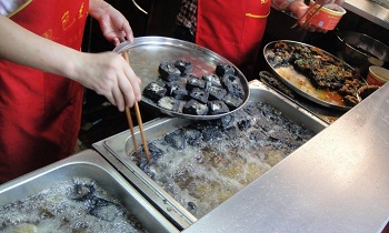 臭豆腐闻着奇臭但是吃起来却又有其独特的香味,在长沙的街头,黑色经典臭豆腐经营店门前,经常都是排起长龙,人头攒动,只为尝一口传说中的黑色经典臭豆腐。