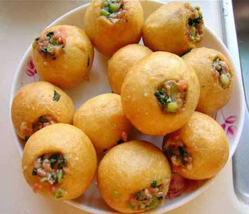4、 把肉馅填塞到油面筋里面,填满馅,否则面筋做好不够饱满。