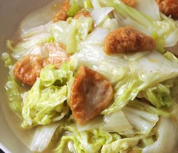 红辣椒的点缀,白菜的雪白,面筋的黄金,色泽好看,爽脆可口,不会油腻,让人胃口大增。而且这道菜成本不高,但营养却能保证。可所谓经济实惠!