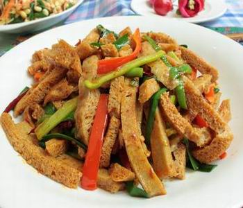 面筋可以做成水面筋、油面筋、烤麸。所以可以炒水面筋,也可以炒油面筋。通常最常说的炒面筋是指炒油面筋,因为在市场卖豆制品的店面都有油面筋。水面筋就少见了,可能是水面筋不太好保存的原因。下面我们来说说如何炒油面筋: