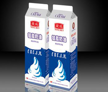 植脂鲜奶油是大陆最近十年内兴起的产奶油制品,最初是在美国维益食品有限公司发明,它的英文名称是Non-Dairy Cream,是以大豆蛋白为主要原料制成的,由于使用方便、发泡性能好、稳定性强、奶香味足、不含胆固醇,逐渐取代了传统的动物脂鲜奶油,成为制作蛋糕的主要原料,被称为从大豆变化来的魔术鲜奶油。植脂奶油是以氢化植物油脂,乳化剂、稳定剂、蛋白质、糖、食盐、色素、水、香精等辅料,制成的一种搅打产品,其突出特点是良好的口感,高档植脂奶油入口即化;良好的稳定性;良好的保形性等等。植脂奶油作为一种预搅打产品可用于生日蛋糕, 面包夹心,慕思蛋糕等食品中,目前已经广泛用于烘焙领域。同时,植脂奶油根据其配方的不同,有着不同的制作工艺,但是一般都有着共同性:水相,糖与稳定剂混合均匀,投入水相搅拌,使稳定剂完全溶解,或加入乳化剂,并升温到一定的温度(65℃-80℃);油相,氢化植物油溶化,加入乳化剂,搅拌溶解,保持一定的温度(65℃-80℃);混合,将水相与油相,乳化一定的时间;均压,压力指数为5MPa-50mpa;冷却,要求迅速冷却到0℃至10℃。植物脂肪多含不饱和脂肪酸,熔点低,与口腔温度相近,且植脂奶油的植脂含量低,所以较好的植脂奶油入口即化,制作的蛋糕特别清淡、爽口、甜而不腻,特别适合老年人、儿童、青少年食用。而且植物脂肪不具有牛膻味,因此,植脂奶油的风味口感更容易被国人接受。