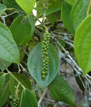 黑胡椒与白胡椒同是一棵藤本植物上的果实,果熟时变为黄中带红。