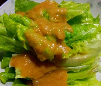 芝麻酱是我们做菜常用的调味品之一,在北方它被称为“麻汁”,在南方人则被称为“麻酱”。芝麻酱中钙质、磷、铁、亚麻油酸的含量丰富,而且芝麻香浓郁扑鼻,是冬季吃火锅时不可或缺的酱汁。在夏季,芝麻酱被用来凉拌菜肴。挑选芝麻酱的时候色正、味纯、无浮油、无杂质者是为上品。而生菜的原产地是欧洲地中海沿岸,因为适宜生食,所以称其为生菜。生菜的热量低,含有丰富的维生素和微量矿物质。有营养学者提出,经常食用生菜可以清热爽神、清肝养胃。生菜色泽鲜翠,质地爽嫩,和芝麻酱拌在一起,口感香脆,十分美味。