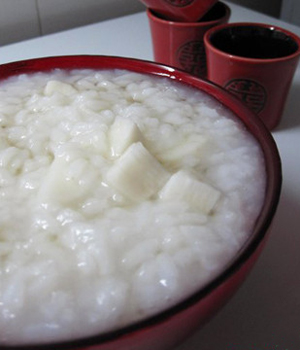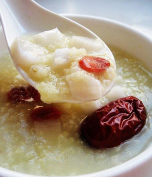 材料:白米1杯,山药300克,枸杞2大匙,红枣5-7颗,水8杯