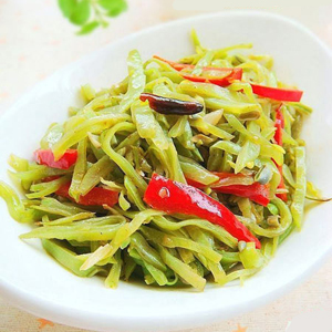 食材:长豆角 500g、干辣椒、花椒各20g(超爱吃麻辣口味的可以多加量)、姜丝5g、食盐、鸡精少许。