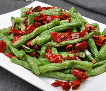 特色:干煸扁豆吃到嘴里很香、很嫩,青翠的色泽也非常诱人。