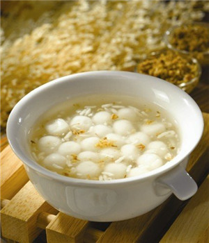 是我国民间一道历史悠久的小吃,广泛流行于长江流域,如四川、湖南、江浙等地。将米酒兑水烧开,放入汤圆(通常是无馅的小汤圆),待汤圆浮起后,加入少量桂花即可。酒酿汤圆清香爽口,有酒味但不浓烈。