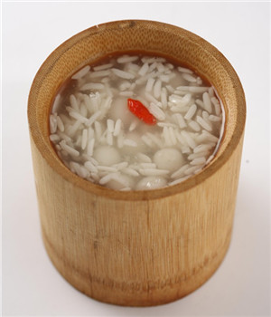 米酒汤圆是我国民间一道历史悠久的小吃,广泛流行于长江流域,如四川、湖南、江浙等地。将米酒兑水烧开,放入汤圆(通常是无馅的小汤圆),待汤圆浮起后,加入少量桂花即可。醪糟汤圆清香爽口,有酒味但不浓烈。