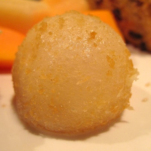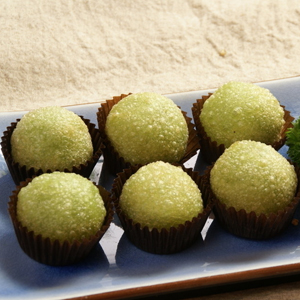 1、将汤圆稍微加热煮熟,捞出,在面包糠上打滚。