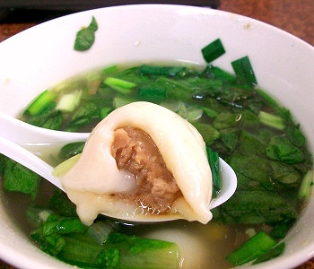 6、在碗中放入适量的酱油、胡椒、味精、化猪油、葱花等,冲入适量高汤,将捞出的汤圆放入即可食用。