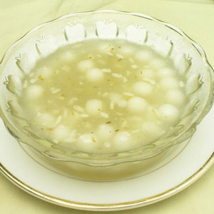 醪糟汤圆是汉族传统名点,节日食俗。属于甜品点心菜谱之一,以汤圆为制作主料,醪糟汤圆的烹饪技巧以煮菜为主,口味属于甜味。将醪糟兑水烧开,放入汤圆(通常是无馅的小汤圆),待汤圆浮起后,加入少量桂花即可。