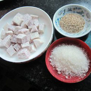 芋头中含有一种粘液蛋白,在被人体吸收后能产生免疫球蛋白,提高身体的抵抗力,因此芋头可以解毒,对人体的癌毒有抑制消解作用,可以用来防治肿瘤等疾病。含有大量的淀粉,它的淀粉颗粒小,仅为马铃薯淀粉的十分之一,其消化率可达98.8﹪;芋头中富含蛋白质、钙、磷、铁、钾、镁、钠、胡萝卜素、烟酸、维生素C、B族维生素、皂角甙等多种成分,所含的矿物质中,氟的含量较高,具有洁齿防龋、保护牙齿的作用。对于芋头这样非常有营养价值的食材,其中味道最好的一样是糖炒芋头。现在,我们来说一说糖炒芋头的具体做法吧。糖炒芋头的主要原料是芋头2个,它的辅料只需要油适量、白砂糖适量。下面我们按下列步骤来烹制美食:把芋头去皮;切块;锅内热油;下芋头翻炒;炒到芋头软熟盛出;下适量水和糖进锅内炒开;炒到糖有粘性;下芋头;炒匀出锅。