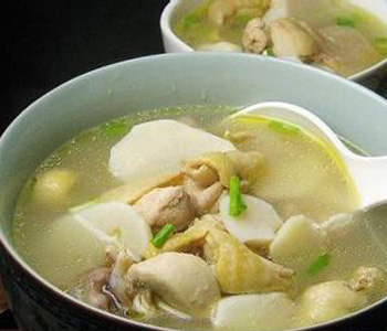 1、三黄鸡切块,洗净。鸡胗、鸡心和鸡肝不要丢弃,待会儿也可以一起炖。在市场买鸡的时候可以让摊主忙帮清理内脏剁成块。