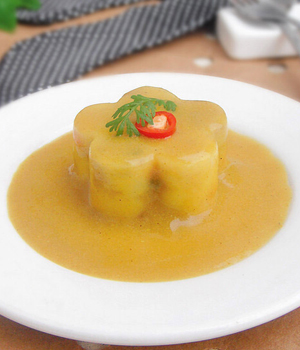 14、食用时取下土豆花,调和着咖喱一起吃。
