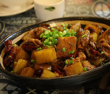 我们还要注意一下哦,土豆烧鸡说白了是属于一道川味农家风味菜,选材简单方便,风味独特,色香味俱全,很受南方人喜欢,特别是喜欢辣味的人可以尝试一下,如果是不能吃辣的亲们就要浅尝而止啦。