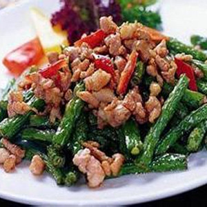 干煸豇豆的制作材料,主料:嫩豇豆400克,碎米芽菜半包(40克),绍酒1汤匙,酱油2汤匙,盐、味精、香油适量。 干煸豇豆的特色: 色泽翠绿,鲜咸爽口。入锅炸制,不宜太久、太干,以皱皮为度。