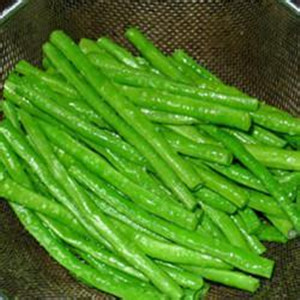 2、锅内做水,水开后,将豇豆放入,焯至色呈翠绿。