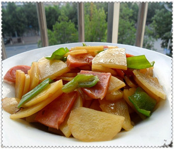 土豆在炒制的时候,不容易熟,而且炒制久了还特别容易出水,一出水的话就会影响菜的口感,有网友就推荐了一个好办法,在炒制土豆的时候可以将土豆在油里炸一下,可以根据自己的喜好将土豆炸制不同程度,有的人喜欢吃软一点的土豆,那就炸久一点,有些人喜欢吃脆一点的土豆,那就时间短一点。其次,土豆炒火腿肠有时候会给人一种油腻的口感,如何杜绝这种情况呢,我们可以在炒菜的时候少放一点油。那么,问题又来了,少放了油,炒菜的时候极易粘锅,这可咋办呢?不用着急,只要在炒菜的时候稍稍放一点水,就可以缓解粘锅问题了。有些人,尤其是南方人,觉得这道菜味道太淡了,那么,可以依据个人口味,在炒土豆之前可以炸一些辣椒,或者放一些郫县豆瓣酱,这样一来,菜的味道就比较浓郁了。