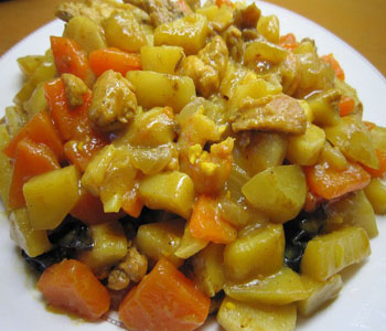 印度是咖喱的鼻祖,地道的咖喱会用多种香辛料复合配置而成。在中国,咖喱也被运用到烹饪上,常见的菜式就是咖喱土豆。中国人喜欢用土豆搭配咖喱,有的人在烹饪时还会加入胡萝卜或各种肉类来增加味道的多样性 。咖喱土豆这样的黄金搭配在中国饮食行业中大放异彩。
