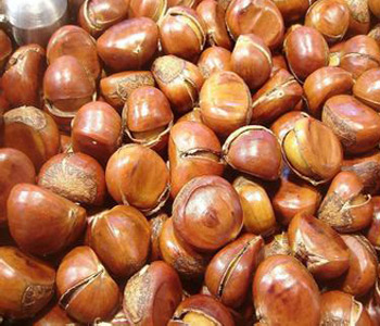 第四,要看个头。有一种日本板栗,个头很大,很喜人,但这种栗子水分大,甜味少,产量高,口味不如国内的品种甜。第二种是大家常见的中等大小的普通品种,根据产地的不同口味上有些差别。第三种不是很多见,个头很小,不过这种一般是山栗子,真正的绿色食品,口味甘甜。
