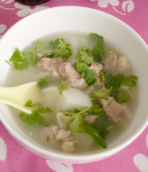 9、接着煮至萝卜到自己喜欢的软硬程度,调入少量盐,如果个人喜欢,还可以调 入一点鸡精提鲜,一点醋去腥。不过鱼汤本身已经有清鲜的味道,鸡精可省;长时间煮的鱼汤并无鱼腥味,对鱼腥味不是特别敏感的人也不必加醋