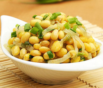 1、泡发的黄豆中撒少许盐,提前腌制一下,可以使黄豆在炒制的时候更容易入味(用干黄豆的话,可提前泡一晚,充分涨发开,这样更有利于吸收,它的营养价值能充分的发挥出来)