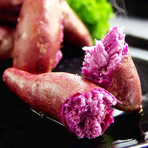 紫红薯还可去皮烘干粉碎后加工成全粉,色泽美观,营养丰富,是极好的食品加工原料,可作为各种糕点主料和配料。目前韩国每年要从中国进口紫色红薯全粉500吨左右。