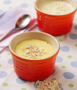 材料:燕麦100克、鲜牛奶400克、鸡蛋5个、糖100克、葡萄干100克。