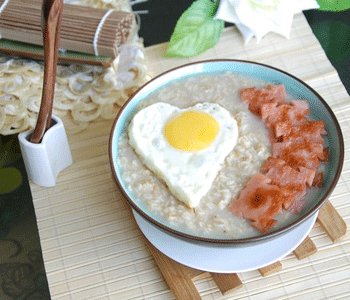 主辅料:燕麦150克,猪瘦肉150克,鸡蛋一个,青葱末20克。