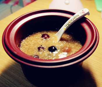 桂圆红枣小米粥选用小米、红枣、桂圆作食材,搭配少许冰糖、枸杞熬制而成。这一款养生粥的口感很好,主要是因为其主要的是那种食材都是药食作用兼而有之的营养食材。红枣、桂圆都是养心安神之佳品,与小米一同熬粥食用,功效更佳。但需要注意的是桂圆易生内热,所以实热体质者不宜多食。