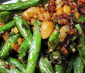 干煸豇豆的制作材料,主料:嫩豇豆400克,碎米芽菜半包(40克),绍酒1汤匙,酱油2汤匙,盐、味精、香油适量。 干煸豇豆的特色: 色泽翠绿,鲜咸爽口。入锅炸制,不宜太久、太干,以皱皮为度。 干煸豇豆的做法: